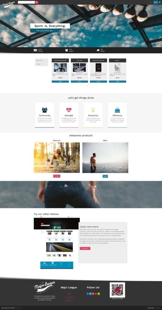 To make up, we often opted to showcase specialized demos to our Enterprise clients and stuck with our generic demos for the public, but these are now days of the past!  In preparation for our release 1.14.5 we are adding additional demo applications & themes for anyone to try. As a start, “Major League” has been added to the system, which happens to be a stylish interpretation of a generic retail store. Additional themes “Ignite Fall” and “Major League” have been made available to backend users as well.