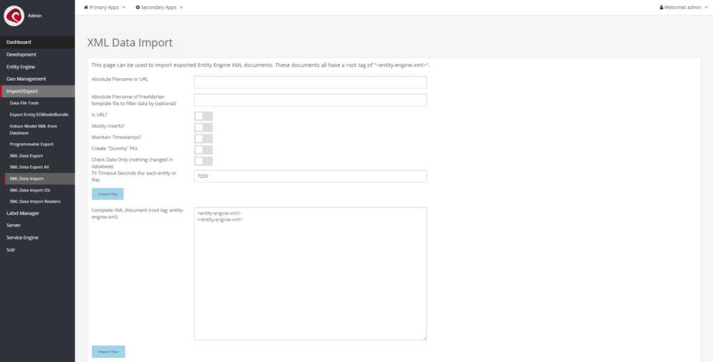 - XML Data Import – Imports XML Seed data from file, or via textarea